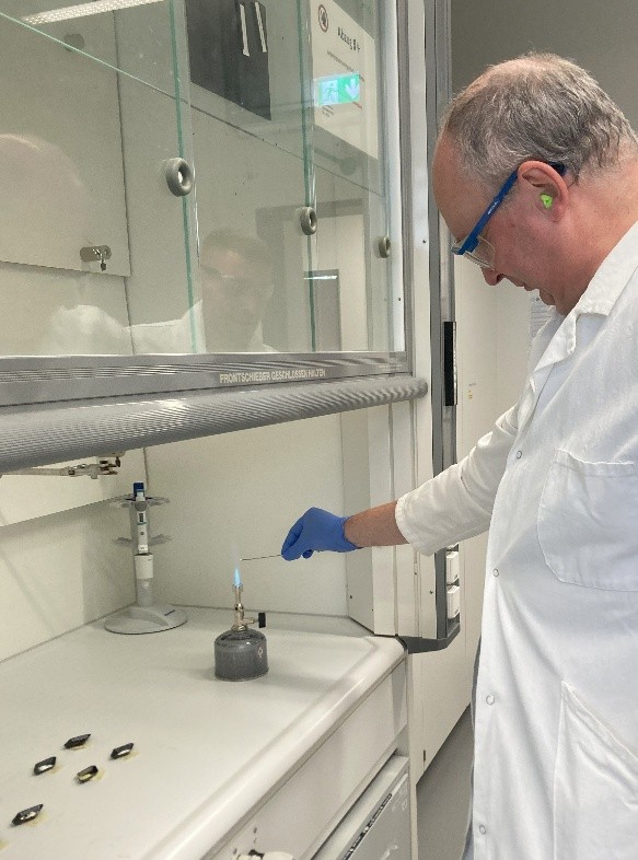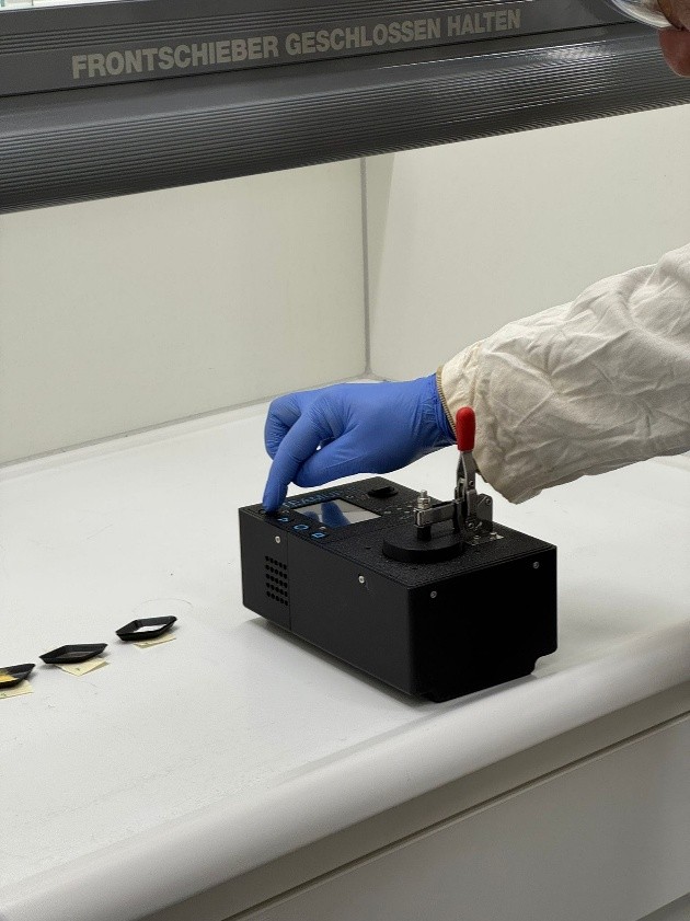 The test focused on three complementary systems: the DOVER chemical detector and FemtoMachine vapour generation unit developed by T4i Engineering, and the RapID rapid explosives identification device developed by H-BRS. Participants rotated through three test stations, combining conventional burn tests with hands-on interaction with the new prototypes. This format enabled direct comparison with established methods while gathering valuable operational feedback.
